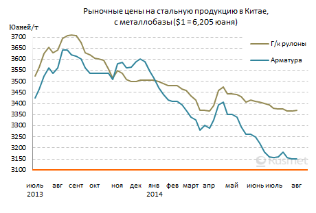 /Rusmet.ru, Виктор Тарнавский/ В июле и начале августа большинство китайских специалистов придерживались достаточно оптимистичных взглядов по отношению к национальному рынку стали. Предполагалось, что спрос на прокат в августе пойдет вверх, что создаст условия для долгожданного повышения котировок. Однако пока что нынешняя обстановка не дает повода для оптимизма.
