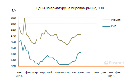 Пошел на подъем строительный сектор в Турции. Во второй половине августа местные производители подняли котировки на стальную продукцию в лирах, объяснив свои действия снижением курса местной валюты по отношению к доллару, но когда лира снова укрепилась, «забыли» опустить их обратно. Таким образом, стоимость арматуры в Турции достигла к началу сентября $580-590 за т EXW по сравнению с $570-585 за т EXW двумя неделями ранее.