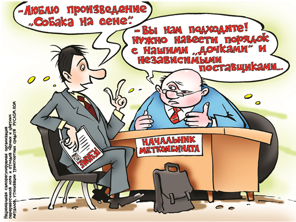 Металлургические комбинаты заинтересованы в большем количестве заготовителей, а тут может сложиться впечатление, что иногда они хотят уничтожить всех. Или намеренно, в непростой период, когда каждая копейка на счету, встав утром с левой ноги, создают себе дополнительные траты на пустом месте. Или иногда к ценообразованию на лом допускают поклонников комедии “Собака на сене” Лопе де Веги, написанная в 1604 году. Название её стало крылатым выражением во многих языках. Полностью выражение звучит так: собака на сене, сама не ест и другим не дает. Поклонники этой комедии, как только их допускают к ценообразованию, сразу от души начинают реализовывать политику “собака на ломе”: и самим не заработать и другим не дать.