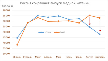/Rusmet.ru, Инфомонитор/ По итогам сентября производство медной катанки основными предприятиями в РФ снизилось на 12,3% относительно предыдущего месяца. Тренд к снижению наметился уже в августе.