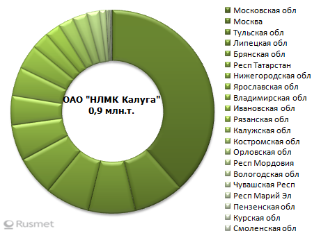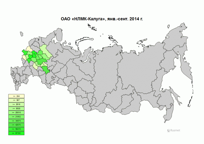 ОАО «НЛМК-Калуга» за восемь месяцев 2014 г. выплавило 674 тыс. т стали, закупив за девять месяцев 0,98 млн. т лома черных металлов, в т.ч. из Москвы и Московской области – 417 тыс. т, из Тульской обл. – 67 тыс. т, из Липецкой - 63 тыс. т.