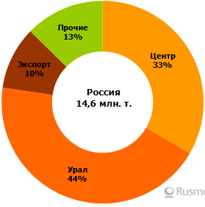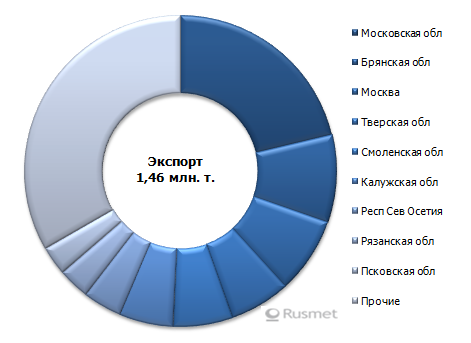 Из всего перевезенного железной дорогой металлолома на долю крупнейших металлургических предприятий европейской части нашей страны приходится 33,4% (4,88 млн. т). В адрес крупнейших потребителей металлолома Урала и Сибири железнодорожным транспортом было отгружено 43,9% (6,41 млн. т). В экспортном направлении было осуществлено 10% общего объема жд перевозок (1,46 млн. т).