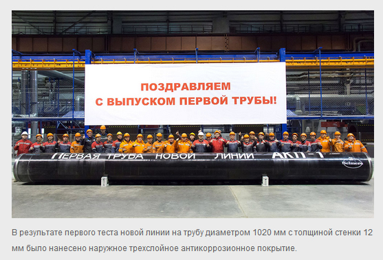В результате первого теста новой линии на трубу диаметром 1020 мм с толщиной стенки 12 мм было нанесено наружное трехслойное антикоррозионное покрытие. Ввод линии в эксплуатацию запланирован на первый квартал 2015 года после прохождения всех испытаний и сертификации. Производственная мощность линии составит 750 кв. м в час.