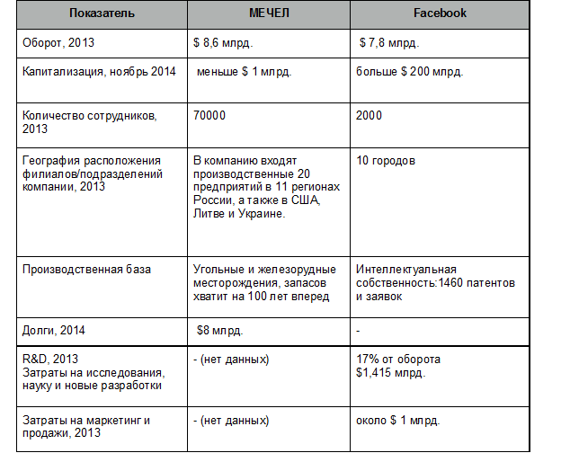 Таблица. Некоторые показатели группы МЕЧЕЛ и Facebook.