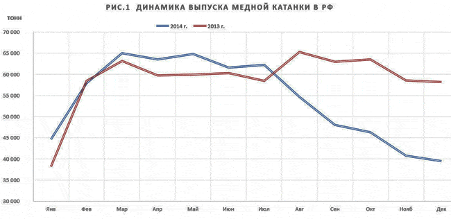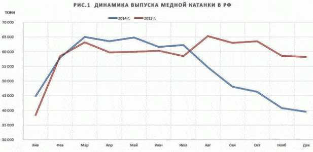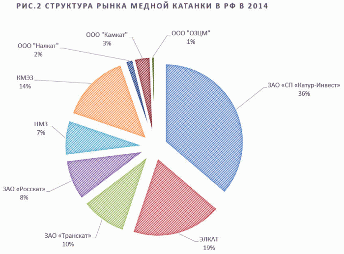 По итогам 2014 года тенденция к снижению отмечается, прежде всего, у независимых производителей ТОО «Элкар», ЗАО «Транскат», ЗАО «Росскат», а также у предприятия, входящего в вертикально интегрированный медный холдинг - СП «Катур-Инвест». Предприятия ЗАО «КМЭЗ» и ЗАО «НМЗ», по итогам года увеличили объемы производства медной катанки.