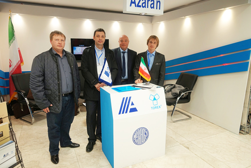 Фото 6. Выставочная экспозиция конференции. Представители НКМЗ вместе с руководителем делегации Русмет Арямовым C.Н.
