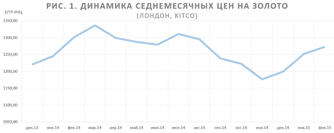 Стоимость золота на Лондонской бирже в 2014 году имела разнонаправленную динамику. В марте 2014 года было зафиксировано максимальное среднемесячное значение 1336,08 $/тр.унцию, с апреля по июнь наблюдалось падение стоимости золота. В июне цена золота выросла на 2,5%, после чего продолжился спад до ноября. С декабря наблюдается рост стоимости золота на Лондонской бирже.