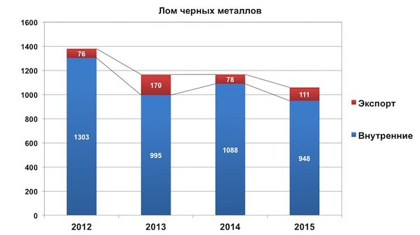Совокупная перевозка лома черных металлов сократилась в марте на 9%: по стране - снизилась на 13%, а на экспорт - возросла на 42%, однако, учитывая небольшой объем экспорта, этого оказалось недостаточно даже для сохранения общего объема перевозок лома на прошлогоднем уровне.