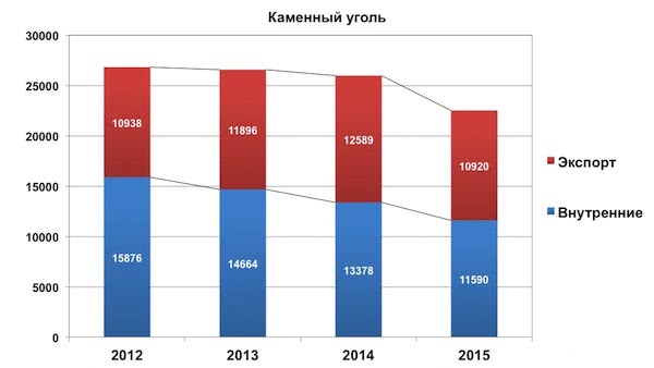 И внутренние, и экспортные поставки каменного угля по жд уменьшились одинаково - на 13%.