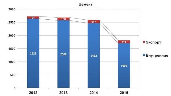 Поставки цемента снизились на 30%: внутренние - на 31%, экспортные - на 6%.