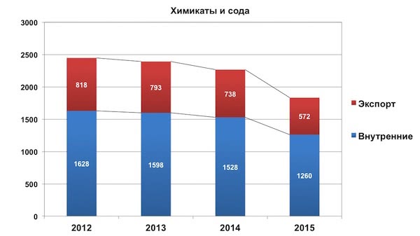 Перевозки химикатов и соды сократились на 19%: внутри страны - на 18%, на экспорт - на 23%.