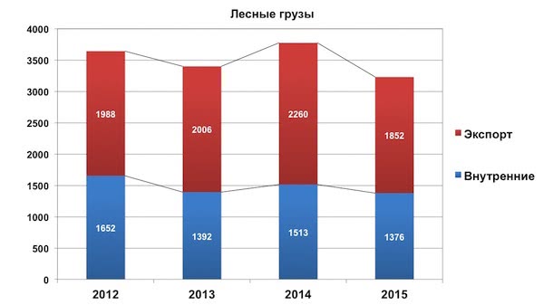 Перевозки лесных грузов снизились на 15%: внутренние - на 9%, экспортные - на 18%.