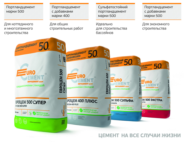 Специалистами Холдинга «ЕВРОЦЕМЕНТ груп» разработана новая линейка упаковки, которую потребители смогут увидеть уже в апреле 2015 года. Теперь упаковка имеет цветовое кодирование для каждой категории цемента, что значительно упрощает выбор нужного продукта и хранение продукции на складе.