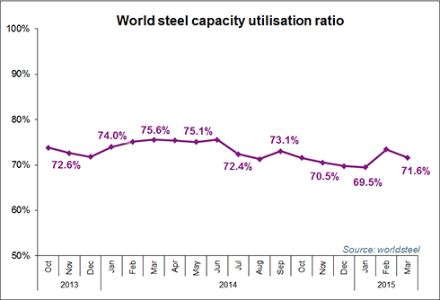 Уровень загрузки производственных мощностей по выпуску нерафинированной стали по итогам марта 2015 года составил 71,6%, что на 4 процентных пункта ниже, чем в марте 2014 года, и на 1,8 процентных пункта ниже, чем в феврале 2015 года.