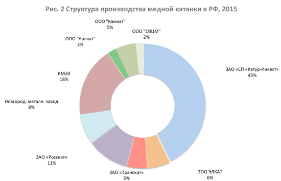 В мае 2015 года падение объемов производства медной катанки относительно апреля 2015 года наблюдалось на большинстве предприятий. Максимальный рост зафиксирован на предприятии ЗАО «СП «Катур-Инвест»» (6,2% к апрелю). На 5,8% увеличилось производство медной катанки в мае относительно апреля 2015 года на «Новгородском металлическом заводе», но по остальным предприятиям зафиксировано падение производства.