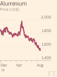 Цены на алюминий были сметены валом китайского экспорта в этом году и находятся на самом низком уровне за шесть лет.