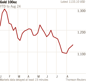 Золоту в этом месяце помогли растущие ожидания, что американская Федеральная резервная система воздержится от повышения процентных ставок в следующем месяце. Толкаемое выше инвесторами, ищущими "приют для наличности" среди глобального падения фондового рынка, золото медленно двинулось выше на 6% в августе.