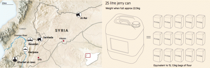 Большая часть контрабанды с сирийской стороны прошла через занятые «оппозицией» области на северо-западе. Местные жители покупают топливо на рынке, льют его в канистры и несут его через границу пешком или, в горах, на осле или лошади.