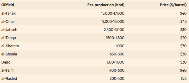 Цена нефти зависит от ее качества. Некоторые месторождения дают около $25 за баррель. Другие, такие как месторождение Аль-Омар, одно из крупнейших в Сирии, дает нефть, стоящую $45 за баррель. В целом, «нефтяной заработок ИГИЛ» оценивается в $1,53 млн в сутки.