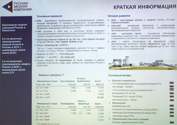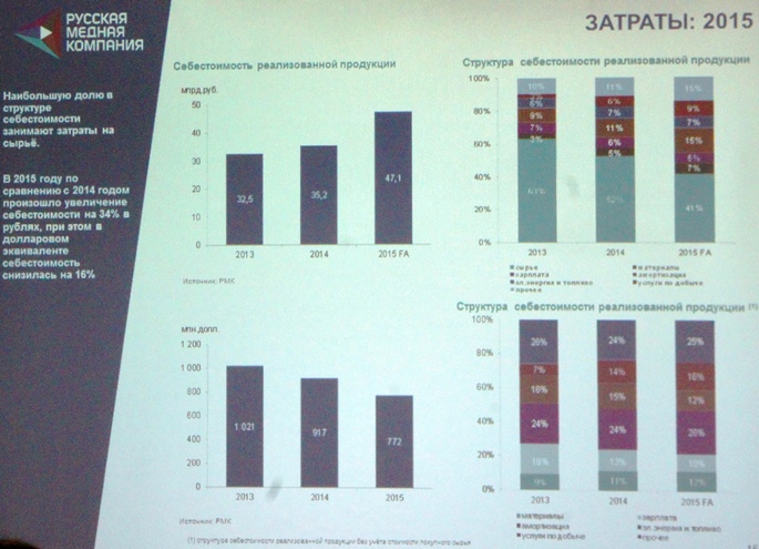 На апрельской пресс-конференции Русская медная компания обнародовала первичные данные по результатам работы в 2015 году и прогнозы на 2016 год.