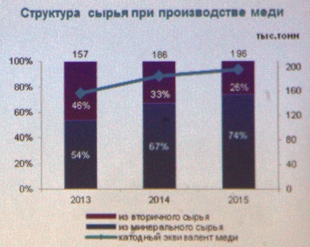 С 2013 года отмечается рост продажи концентратов (медь, цинк), но производство катодной меди и катанки снижается: