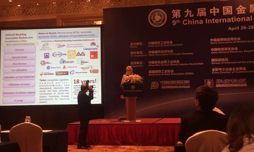 Специалист международного отдела НП НСРО "РУСЛОМ.КОМ" Полина Чермных выступила с докладом по потенциалу развития сотрудничества России и Китая в сфере утилизации, ломопереработки, металлургии и экологии.