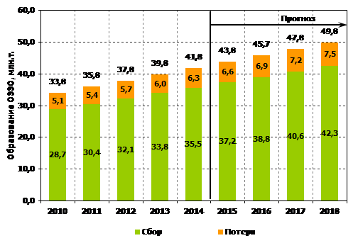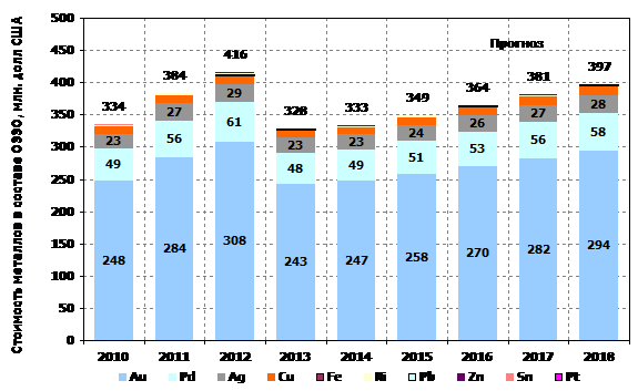 Ежегодно в России перерабатывается до 30 млн. тонн лома. Содержание ОЭЭО достигает до 900 тыс.тонн.По итогам 2015 г. в России было продано почти 60 млн. единиц «Потребительского оборудования» и «оборудования для IT и телекоммуникации», в которых содержится около 38 т. серебра, 8 тонн золота, 3 тонны палладия. Учитывая короткий срок жизненного цикла изделия, уже через 2-3 года эти устройства потребуют переработки.
