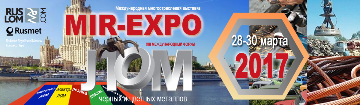 Глобальный форум по вторсырью 28-30 марта 2017, в Москве, в конгресс-центре «Роял Рэдиссон». На первом форуме, который состоялся в 2004 году, главной темой был лом черных металлов. Теперь, в центре внимания основные рынки вторсырья, в отношение которых действуют экосборы или утилизационные сборы по 458-ФЗ: металлолом, пластик, макулатура, резина, стекло, электронный лом, аккумуляторы, отработанные масла, вышедшие из эксплуатации транспортные средства. В течение 3-х дней в 10 тематических конференциях и сессий принимают участие 1000 делегатов из 30 стран мира.