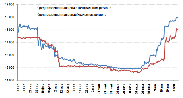 В Уральском регионе закупочная цена увеличилась на +5,25% или +750 руб/т до уровня 15 070 руб/т. (без учета НДС и ЖД тарифа).