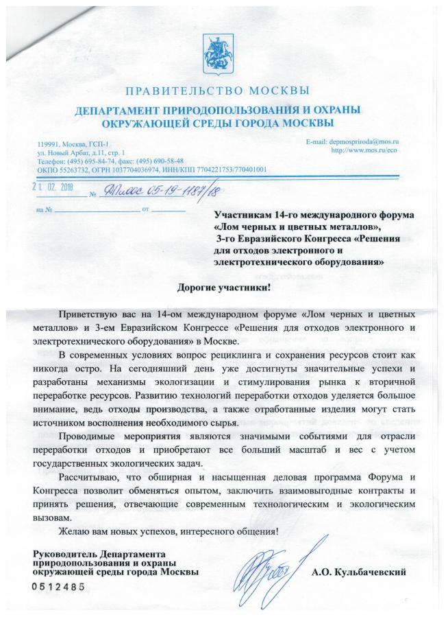 Письмо-обращение от департамента природопользования и охраны окружающей среды г. Москвы