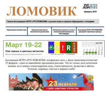 Газета Ассоциации НСРО «РУСЛОМ.КОМ» о рынке лома и отрасли обращения с отходами