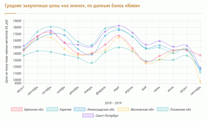 В 2019 г. цена на металлопродукцию в России снизилась минимум на 1300-1500 руб за тонну, упал и спрос на нее. В конце лета значительная часть металлургических заводов РФ применила в отношении лома черных металлов стоп-отгрузку, что говорит о создании зимних запасов лома и подтверждает отсутствие дефицита металлолома на рынке. Сейчас средняя стоимость тонны черного лома на отечественном рынке чуть более 13 тыс.руб. Но уже в сентябре текущего года в ряде регионов цена на лом «на земле» практически достигла ценового дна - 10 000 - 11 000 руб. за тонну. Ломозаготовители вынуждены работать без рентабельности, чтобы закрыть обязательства по контрактам на поставку.