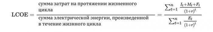 | LCOE | : | Средняя стоимость нормированного производства электроэнергии |